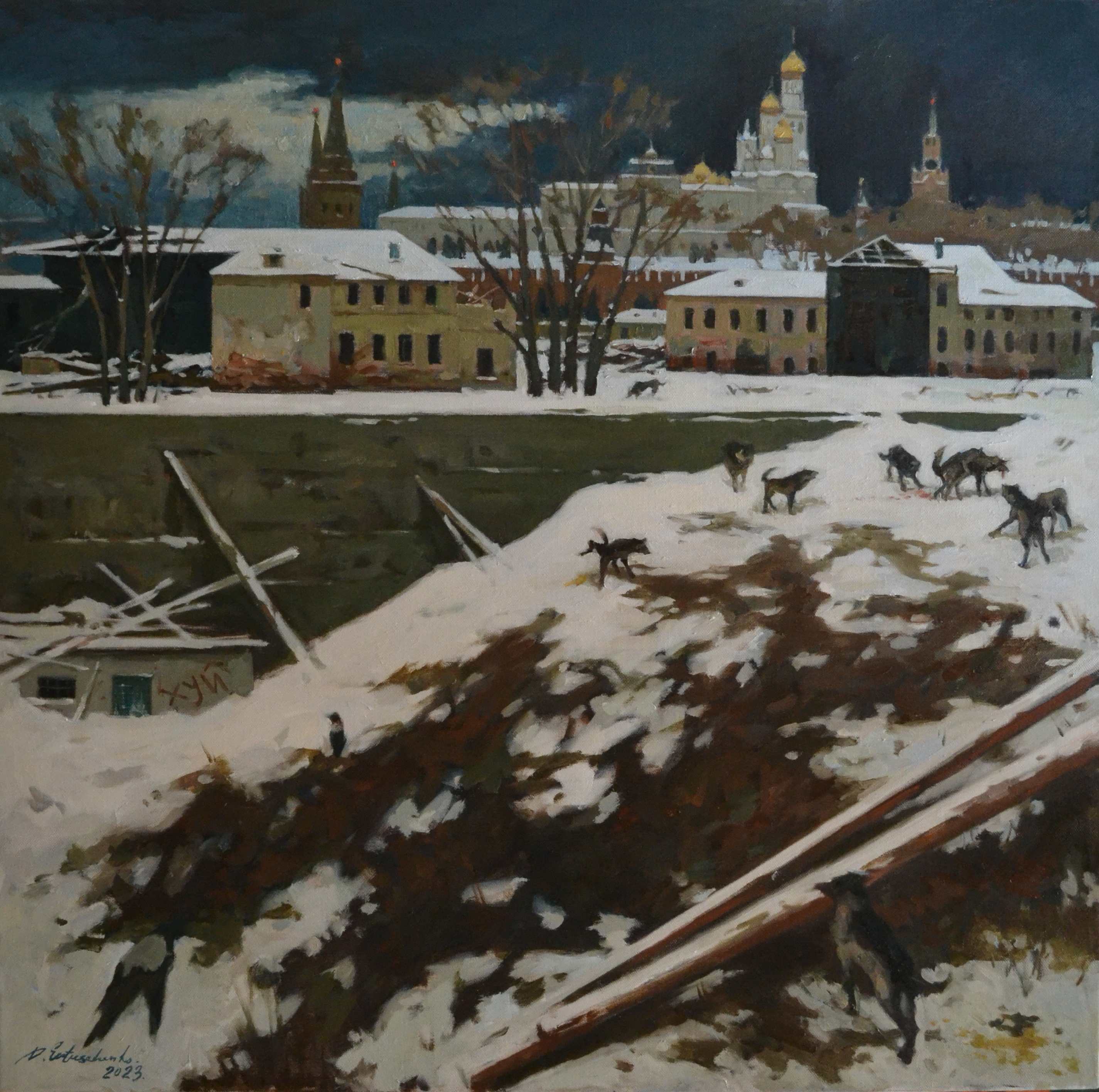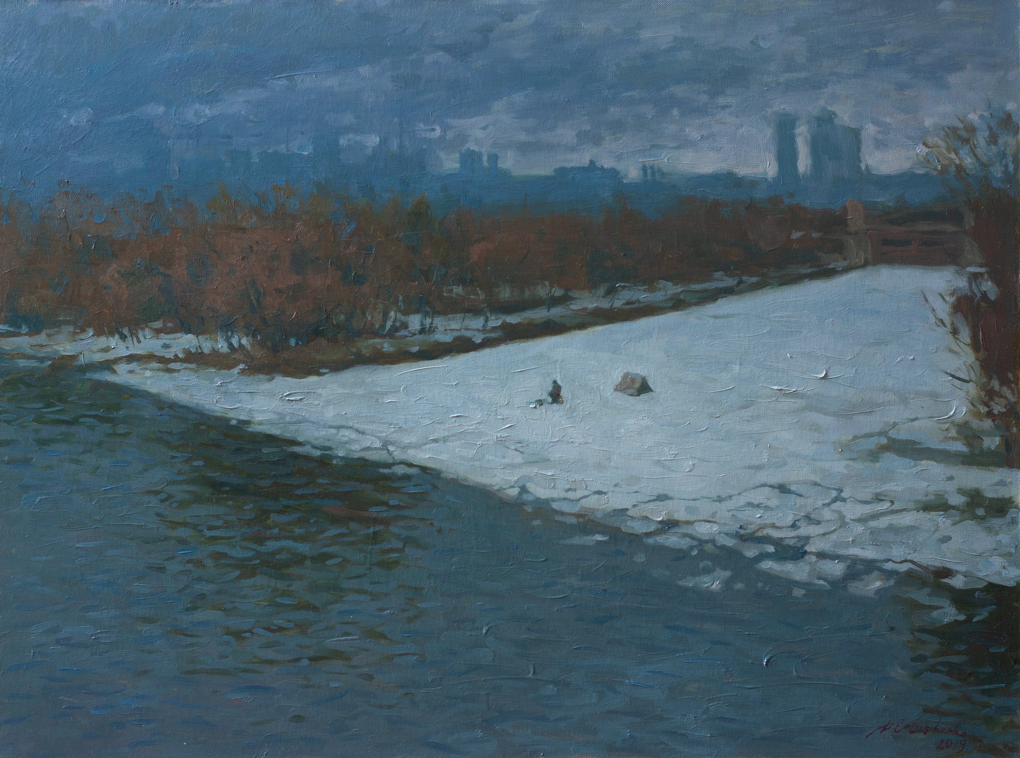 Winter on the Moscow River. Canvas, oil. 80x60. 2019