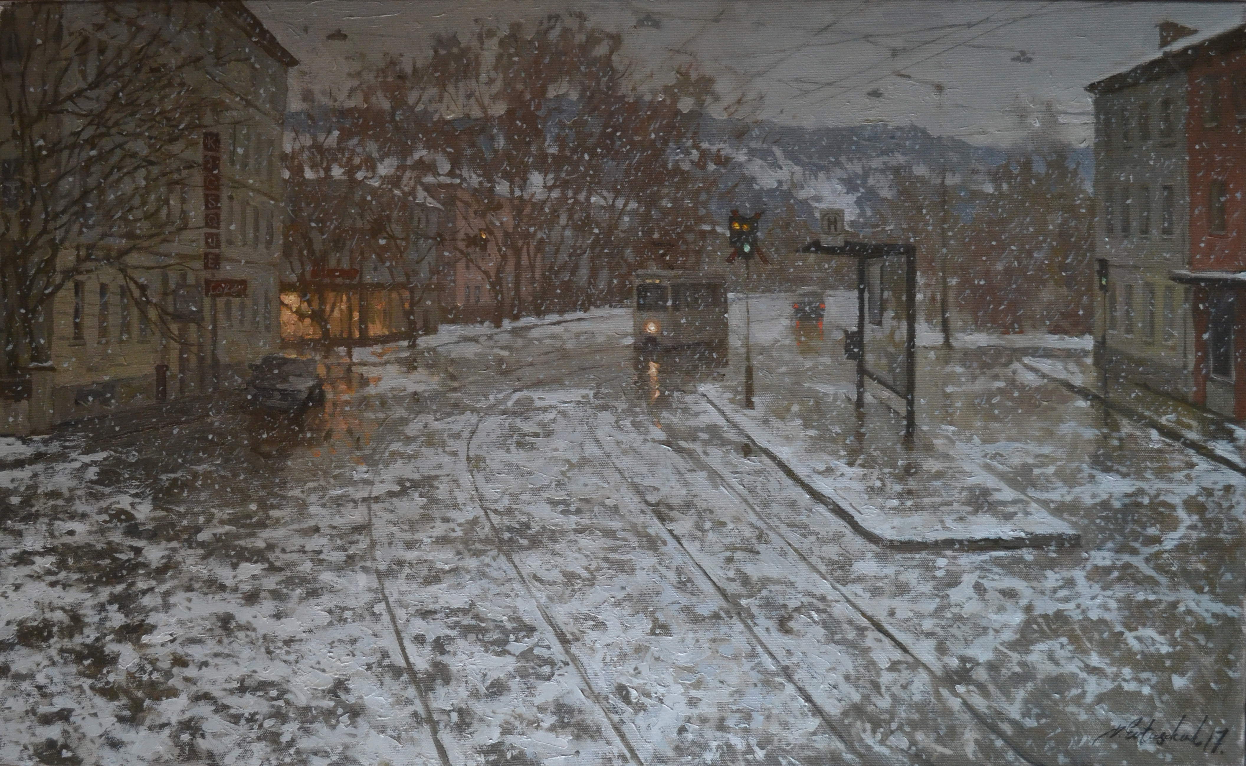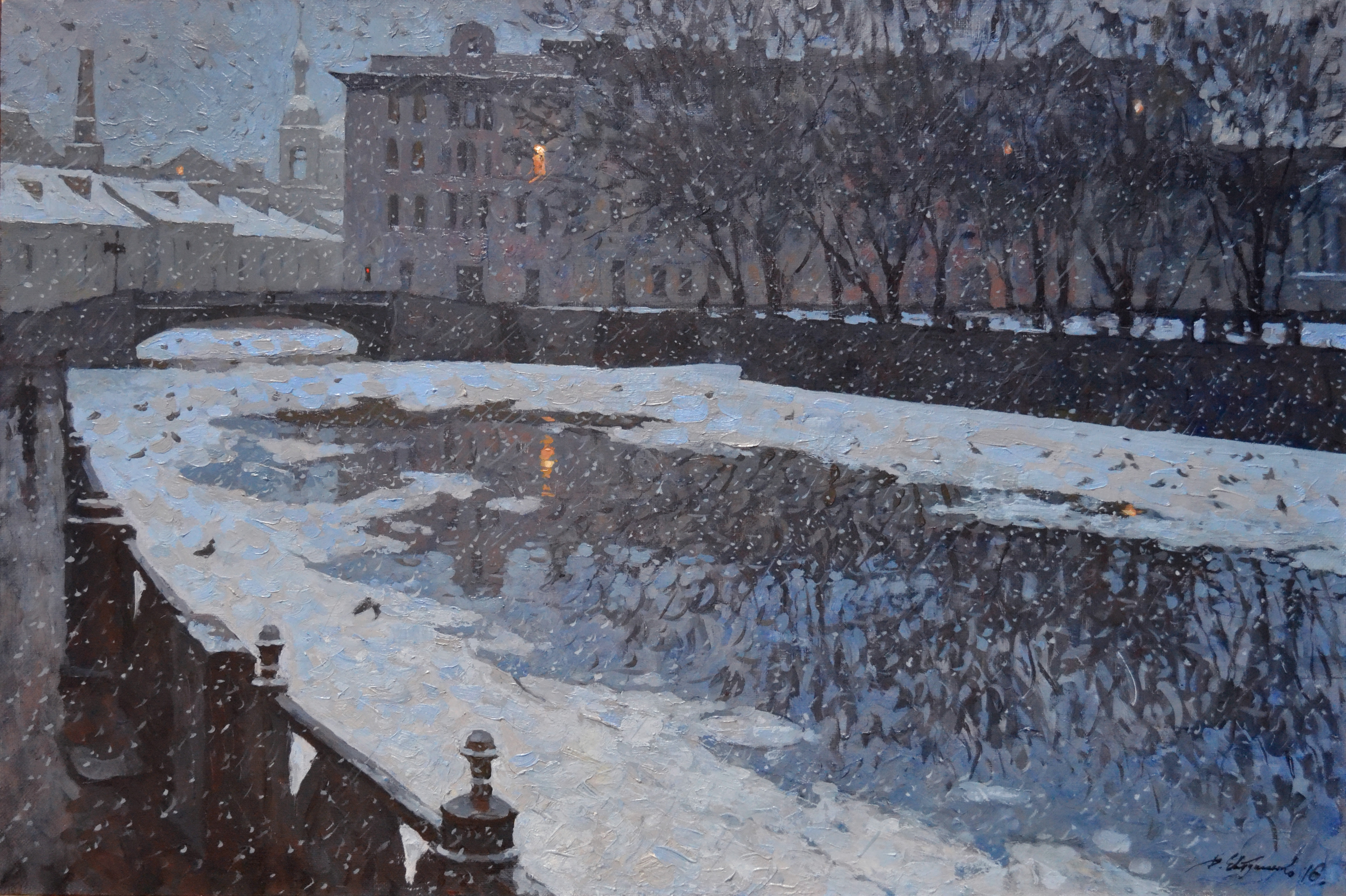 Saint Petersburg. March twilight. Canvas, oil. 80x50. 2016. Private collection