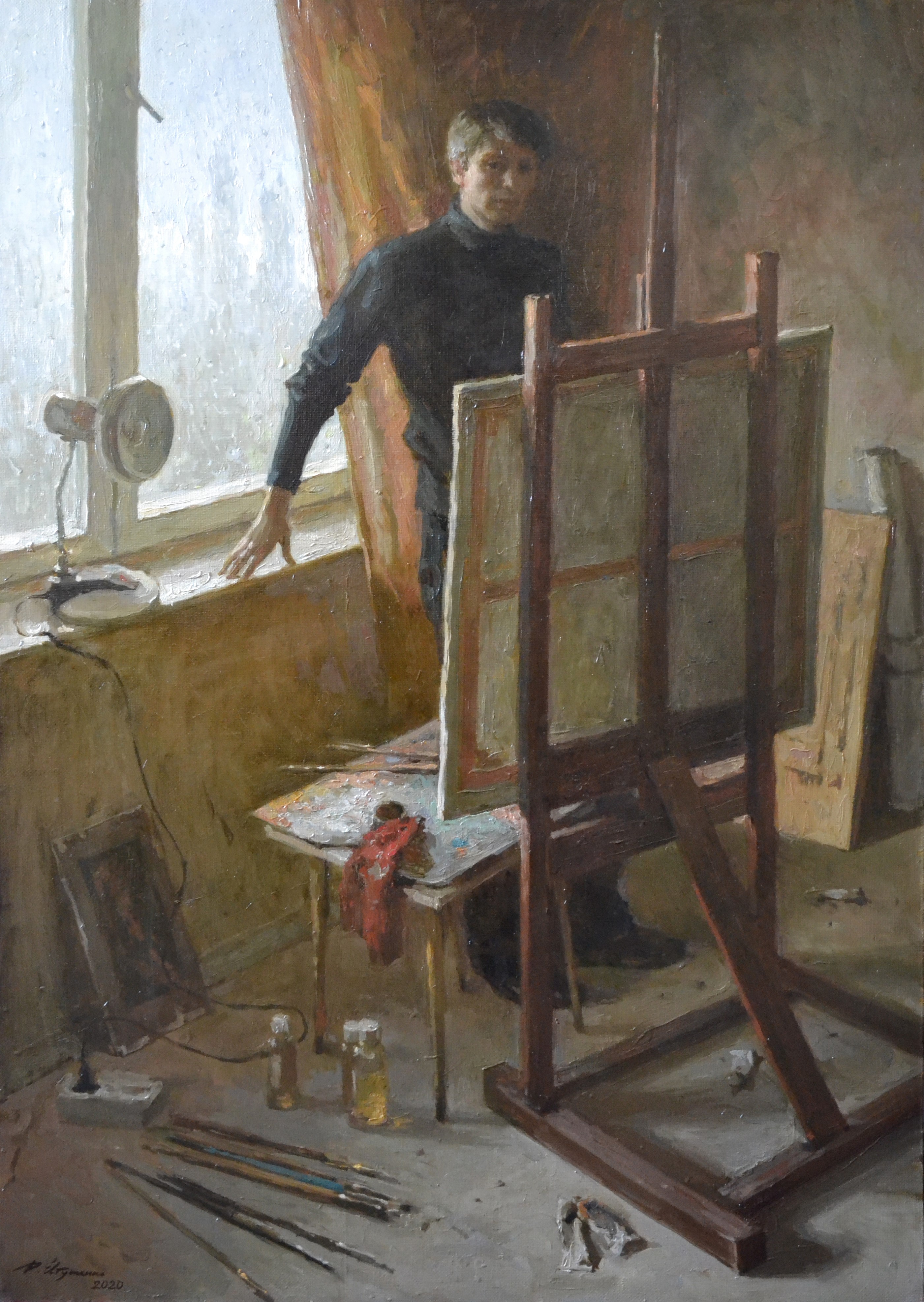 Moscow. In the studio. Canvas, oil. 100x80. 2020