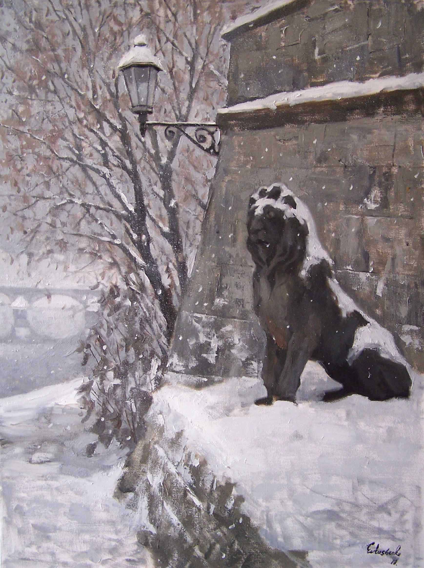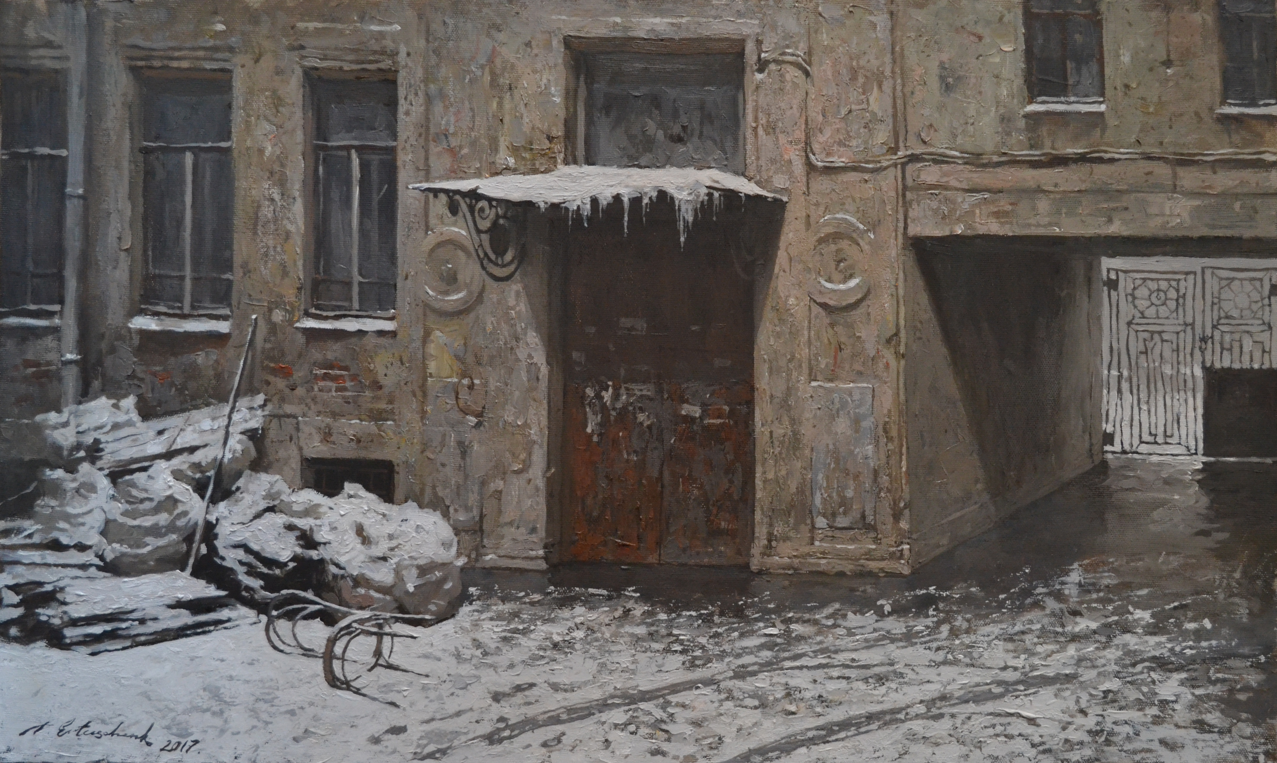 Courtyard in St. Petersburg in winter. Canvas, oil. 110x80. 2011