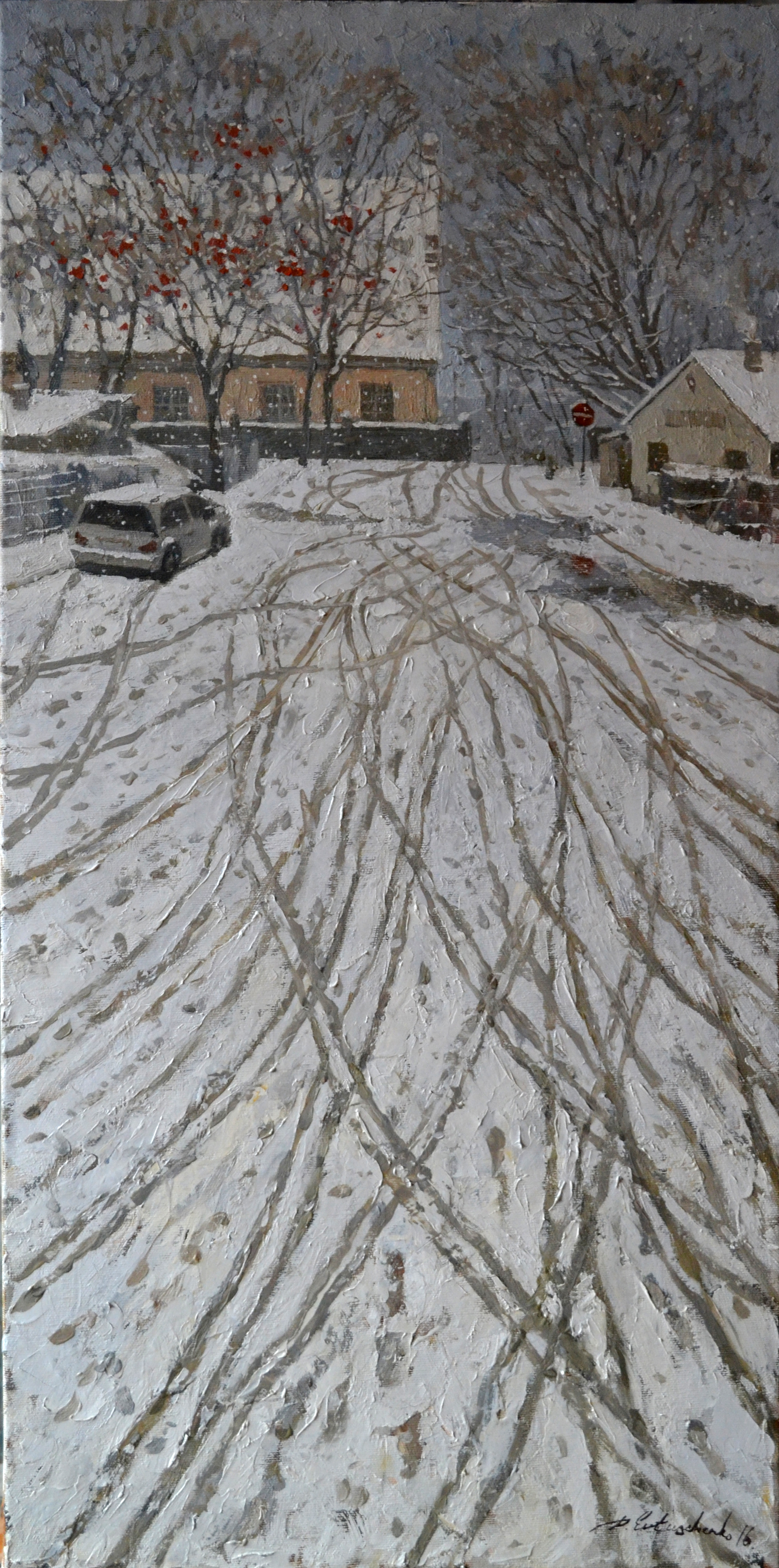 In the vicinity of Main in winter. Canvas, oil. 80x40. 2016