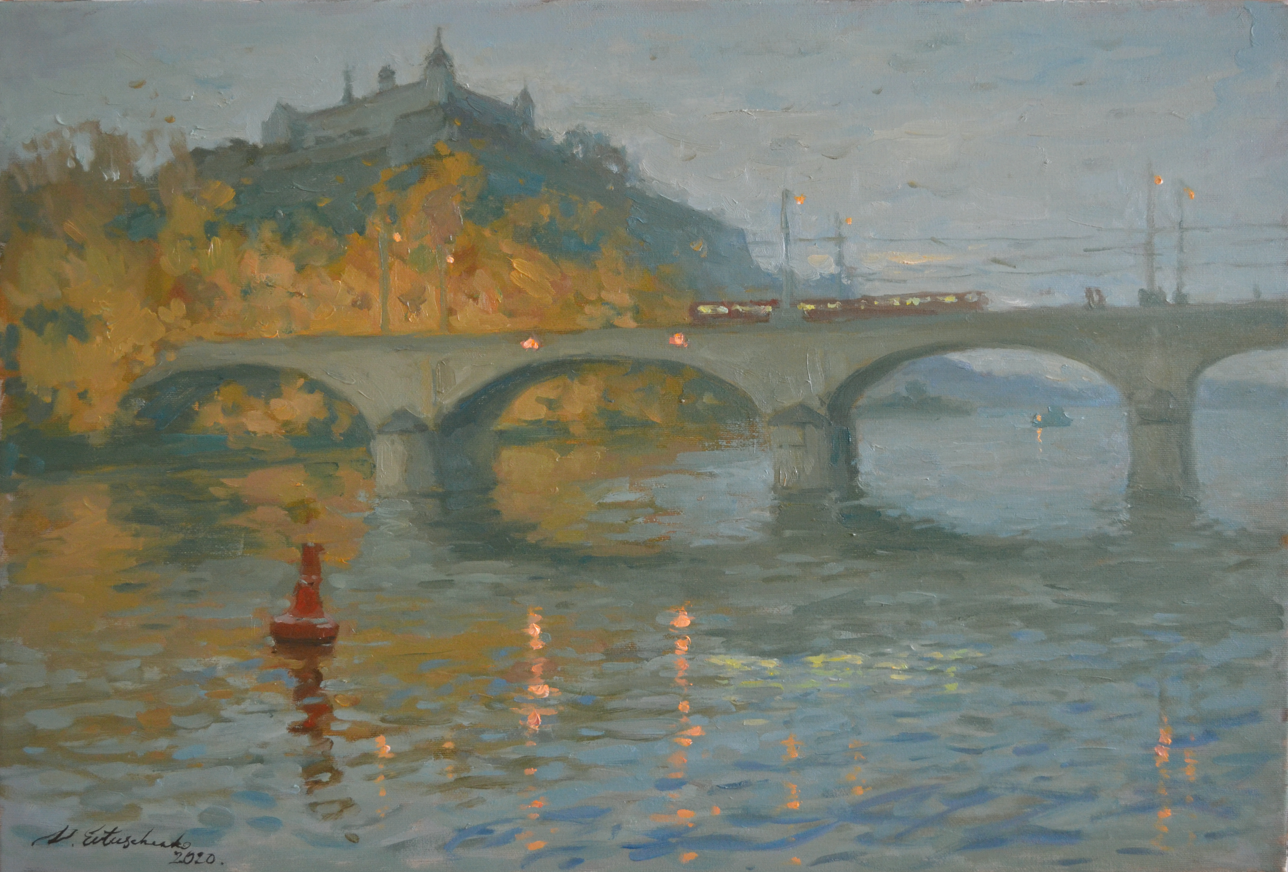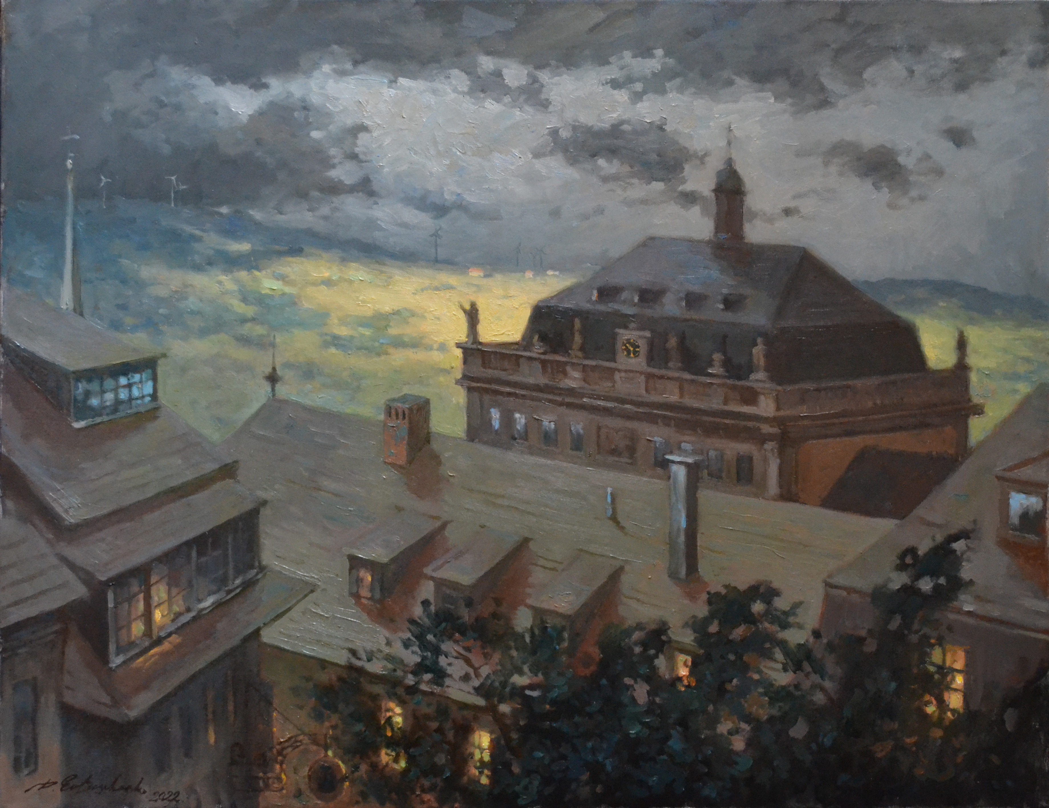 New Year's Eve in a provincial Bavarian town. Canvas, oil. 90x50. 2017