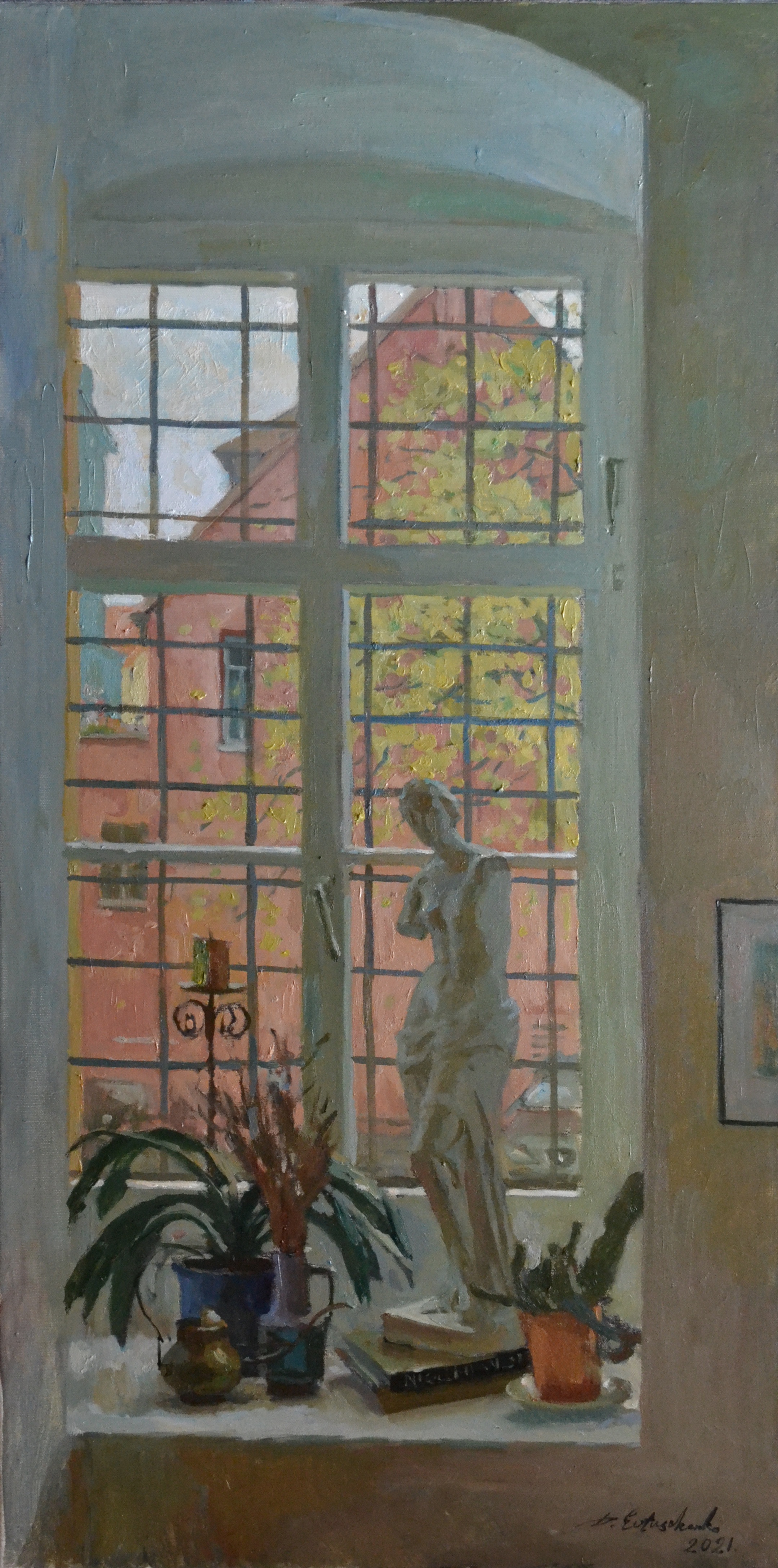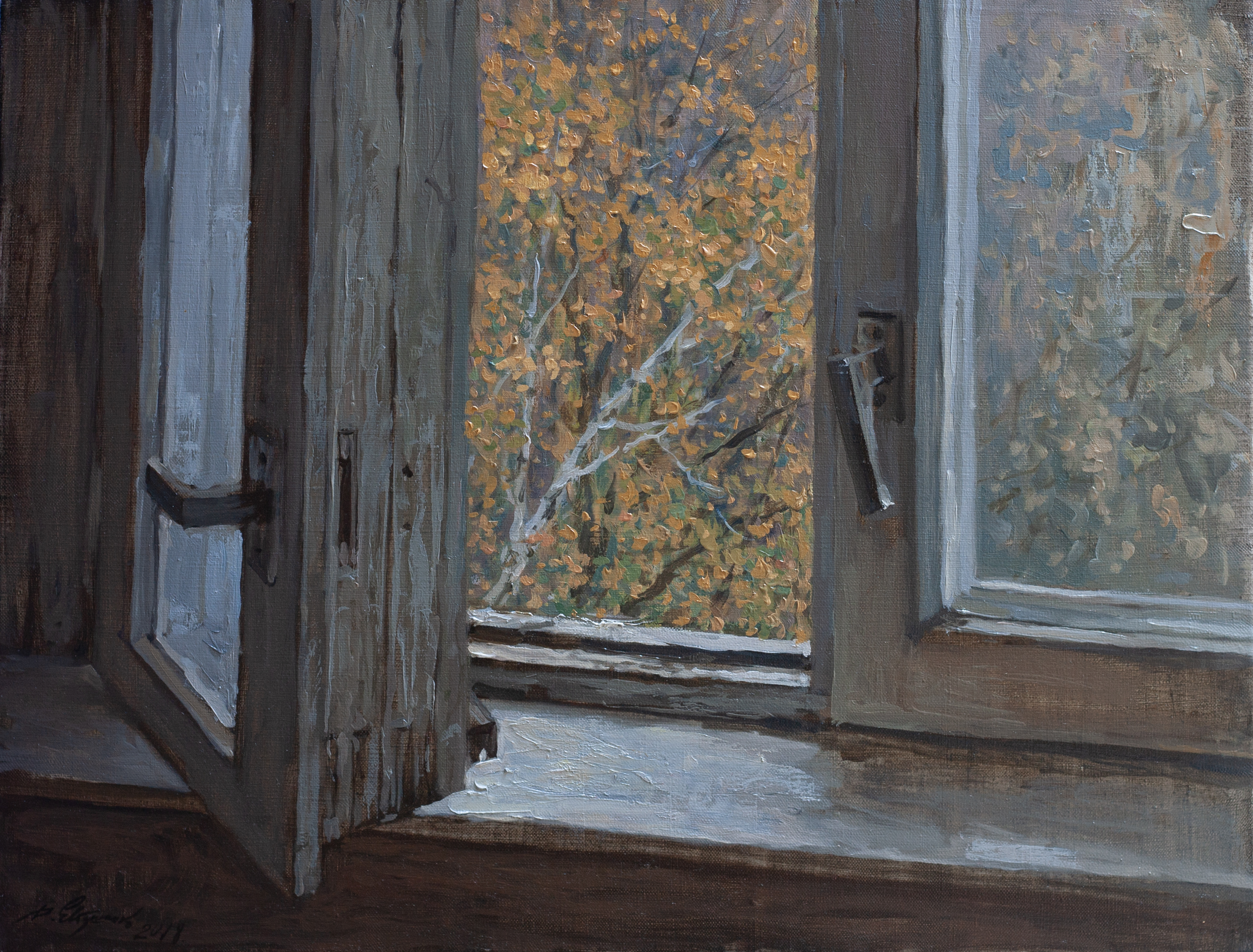 Window in the atelier in autumn. Canvas, oil. 100x50. 2021