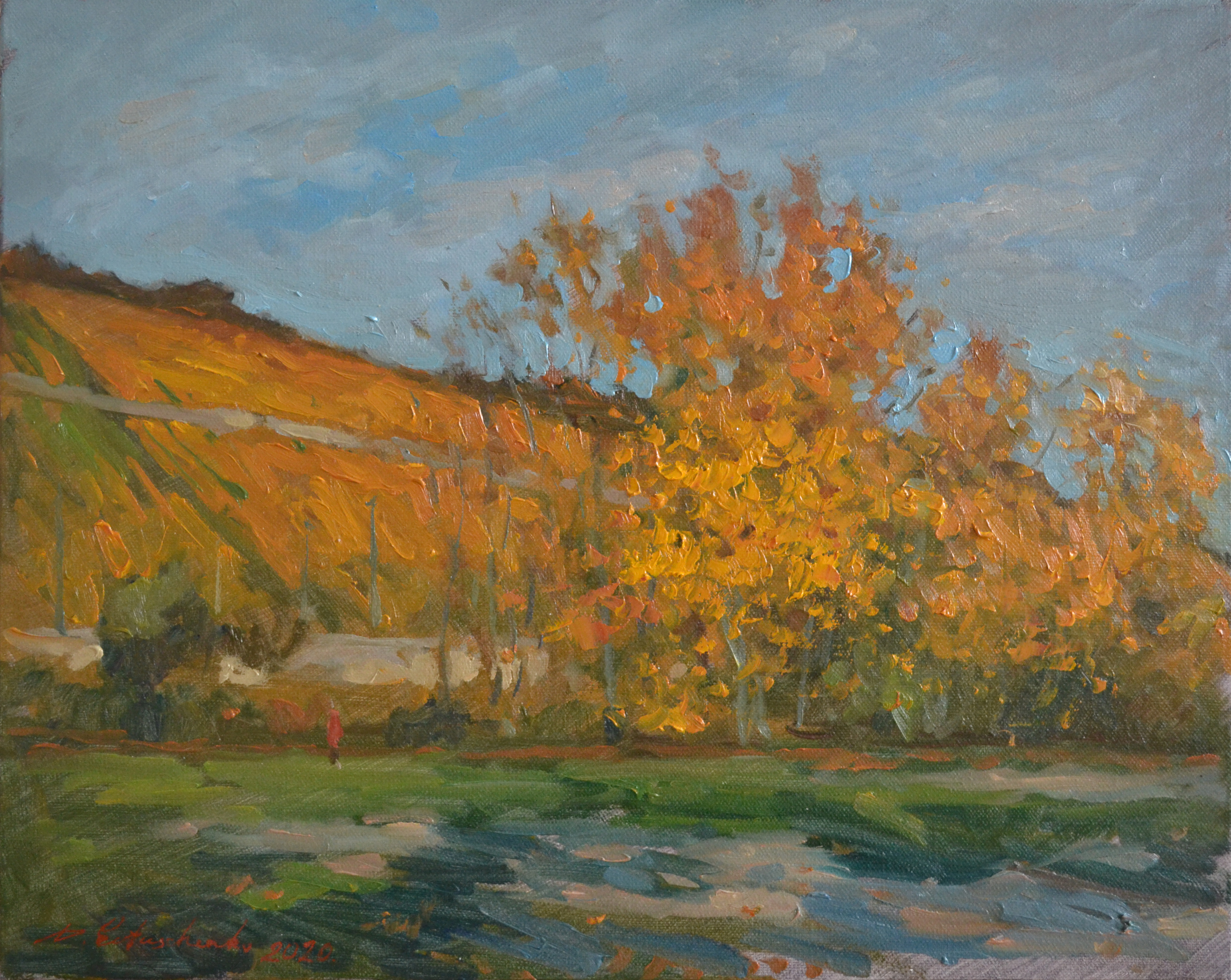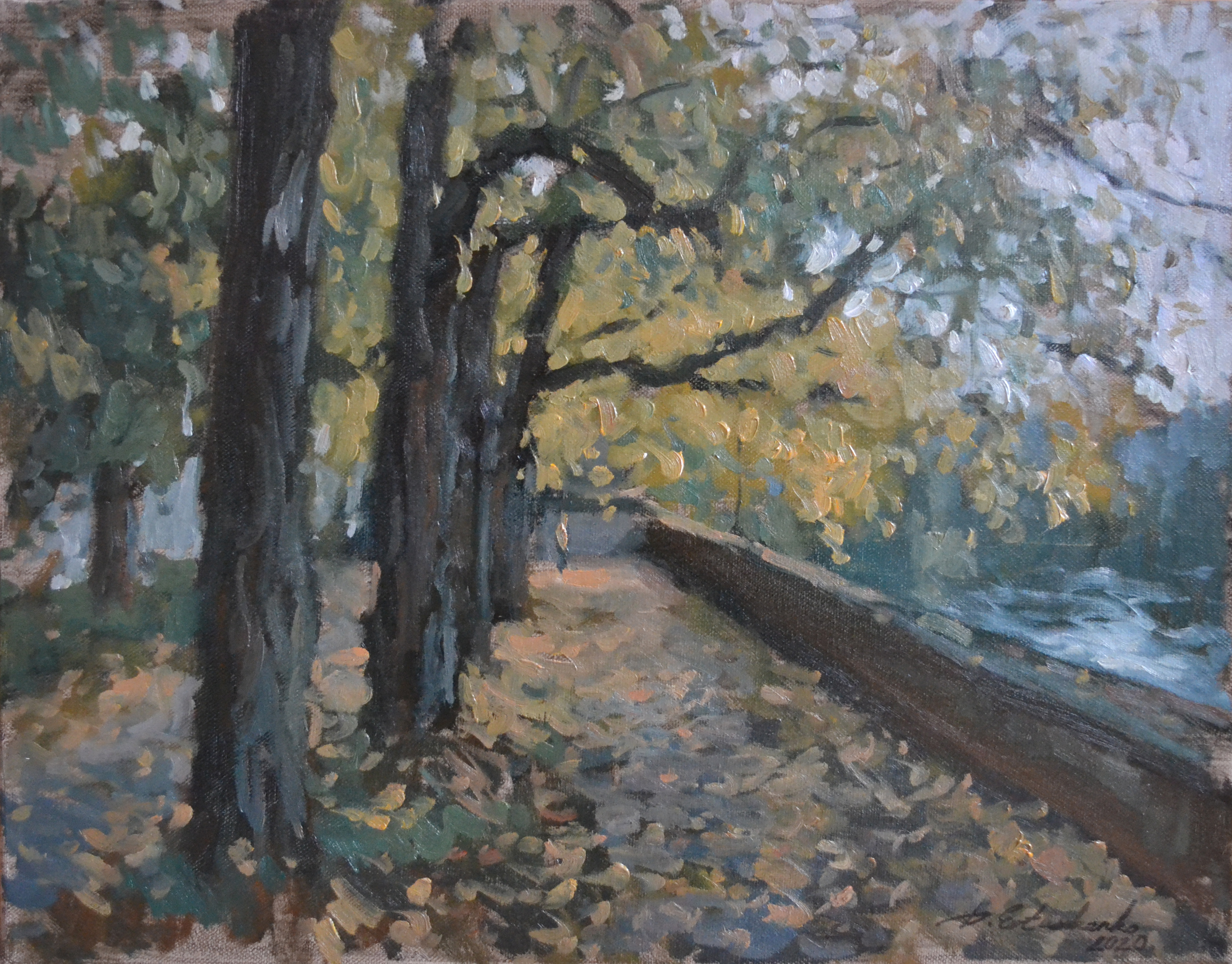 Main embankment in autumn. Etude. Canvas, oil. 40x50. 2020