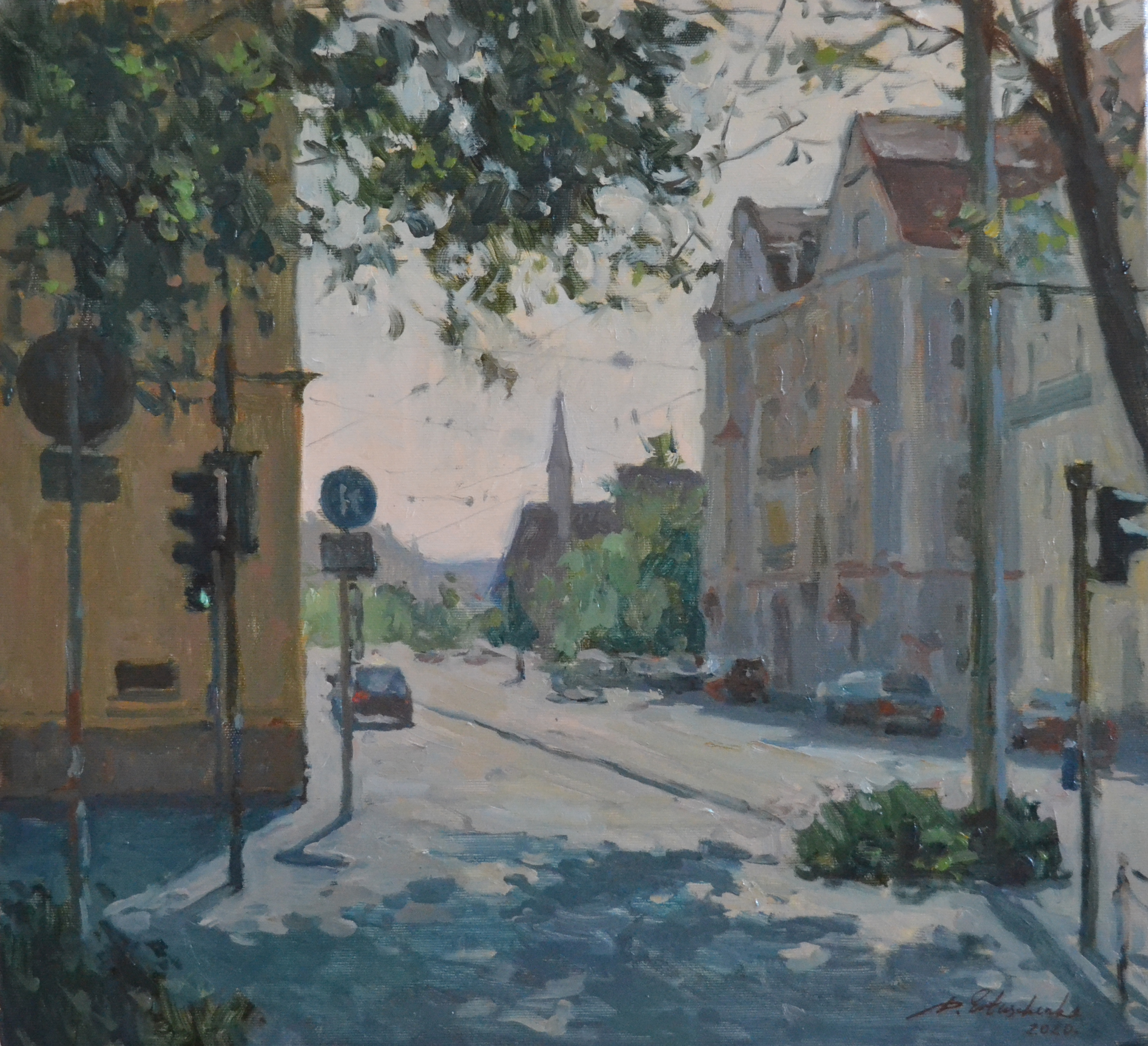Street in Würzburg. Canvas, oil. 50x50. 2020