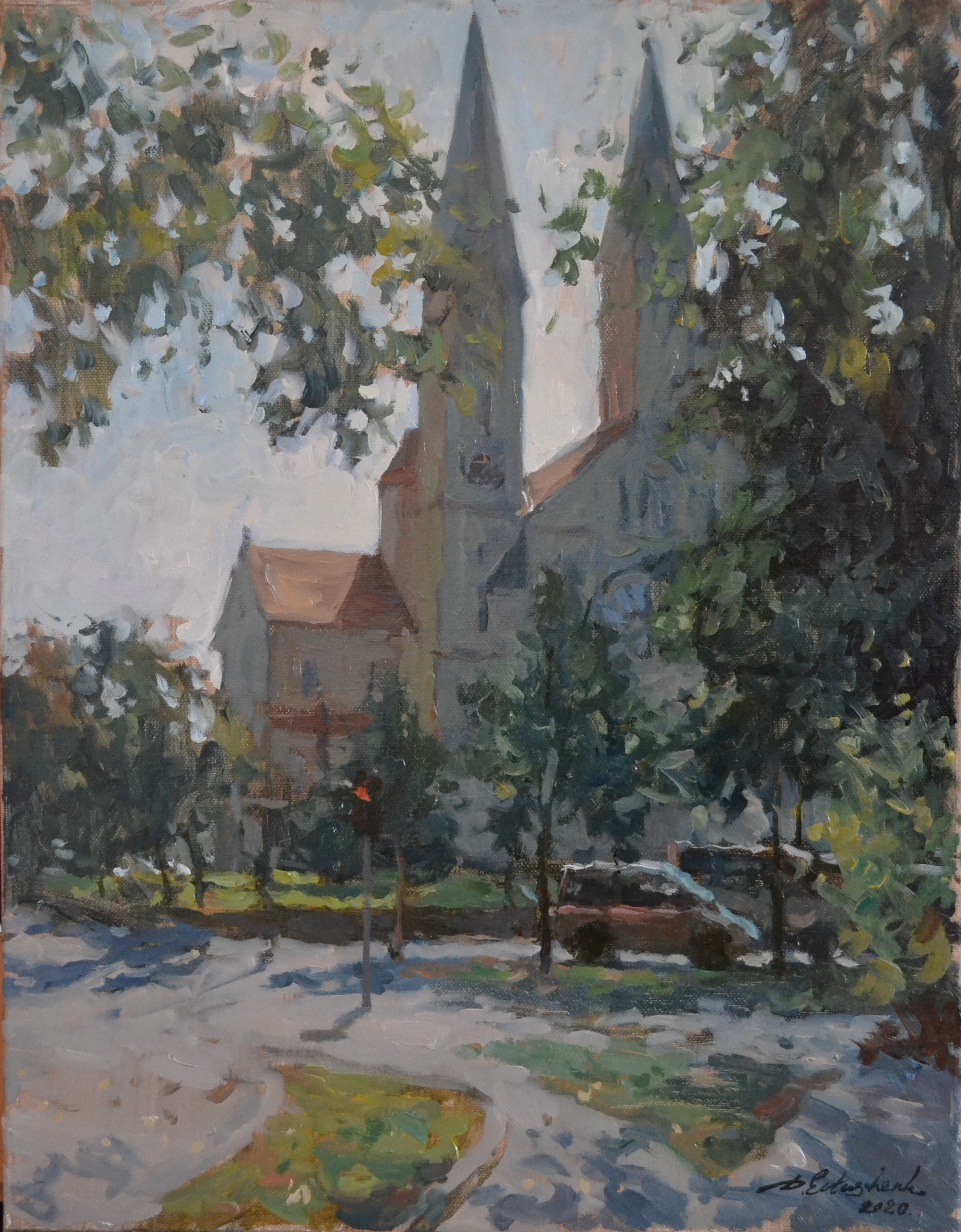 St. Adalbero Kirche. Würzburg. Etude. Canvas, oil. 50x45. 2020