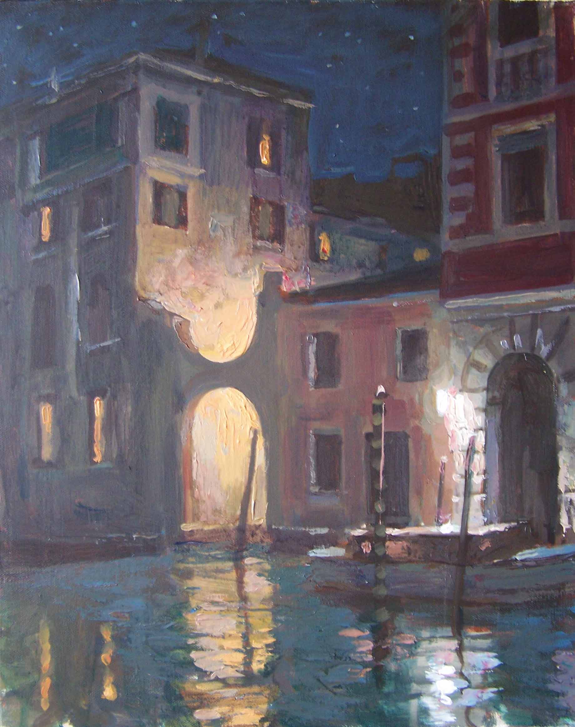 Venice Canal at night. Canvas, acrylic. 50x40. 2008. Private collection