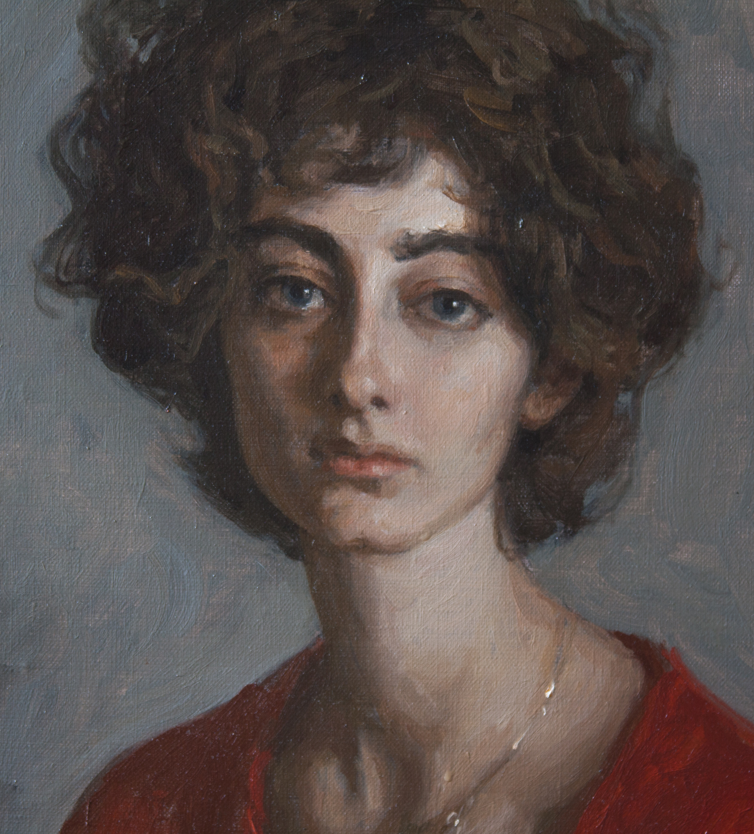 Portrait of Alla Gutnikova. Fragment. Canvas, oil. 105x70. 2018