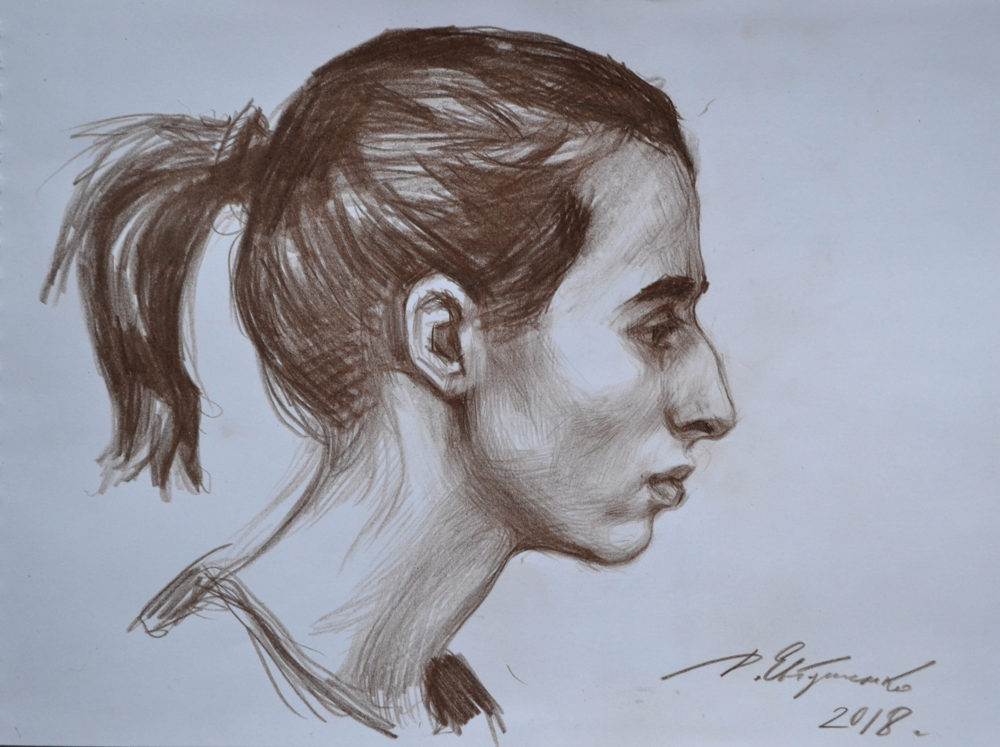 Portrait of Dasha. Paper, color pencil. 30x20. 2018