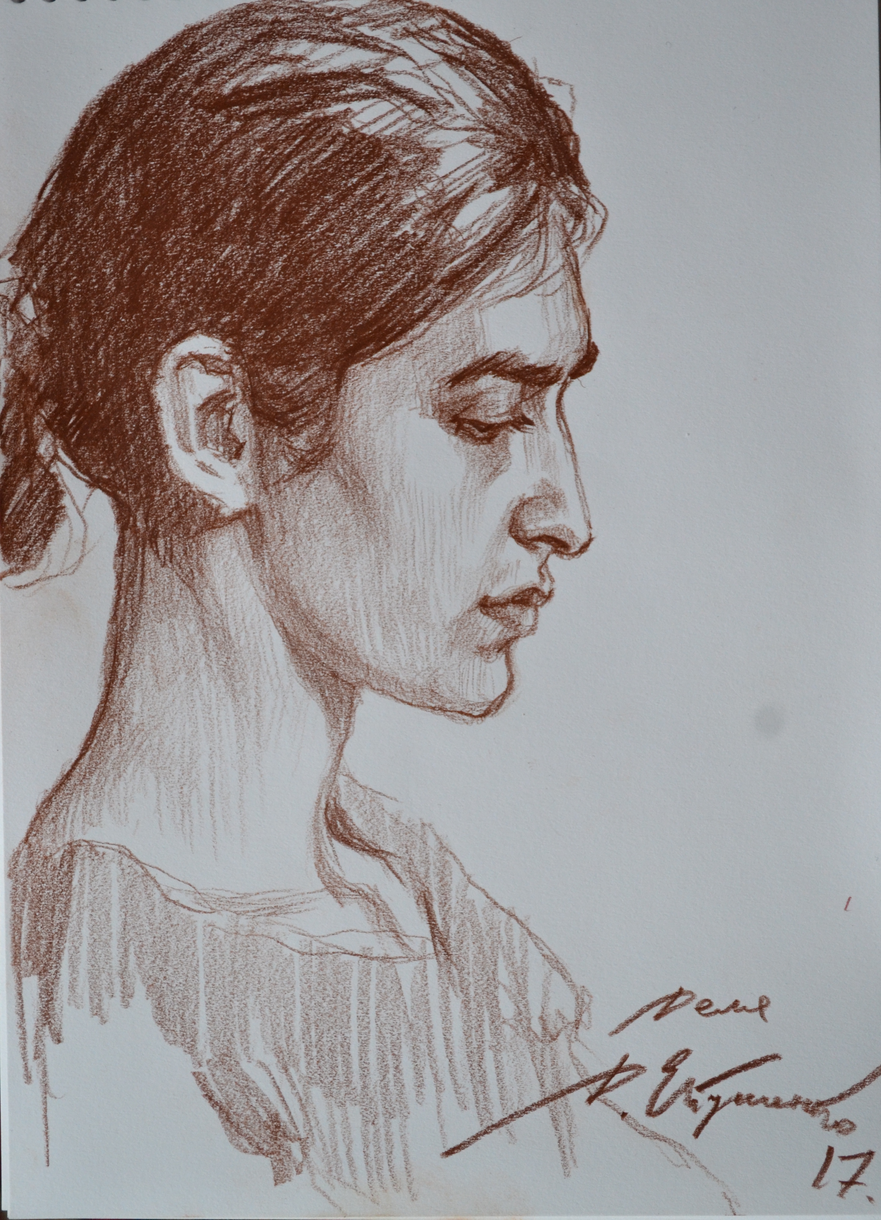 Portrait of Irina Shkoda. Paper, color pencil. 24x17. 2017
