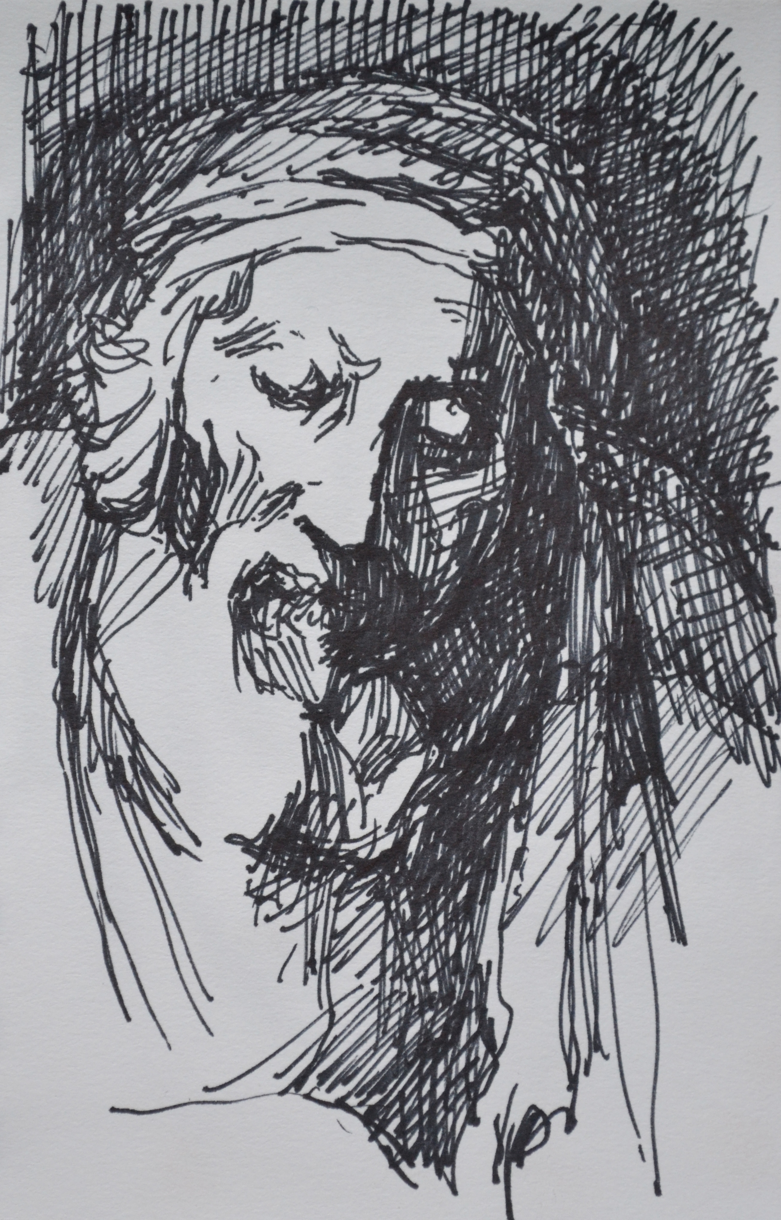 Sketch after Rembrandt. Paper, pen, ink. 10X7. 2015